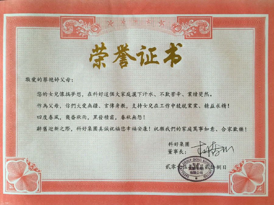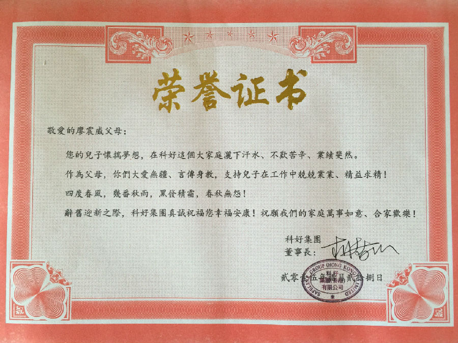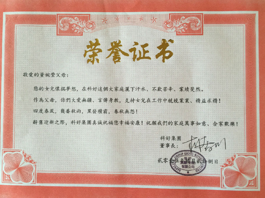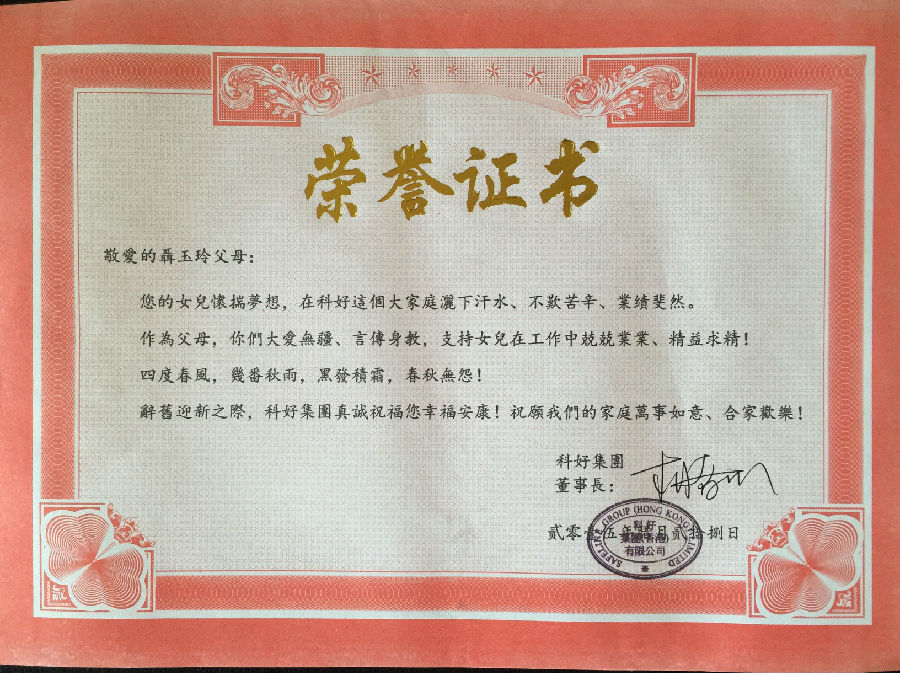 优秀的员工之所以优秀,与父母的教育密不可分,大家怀揣梦想,在科好这个大家庭洒下汗水、不叹苦辛、业绩斐然。